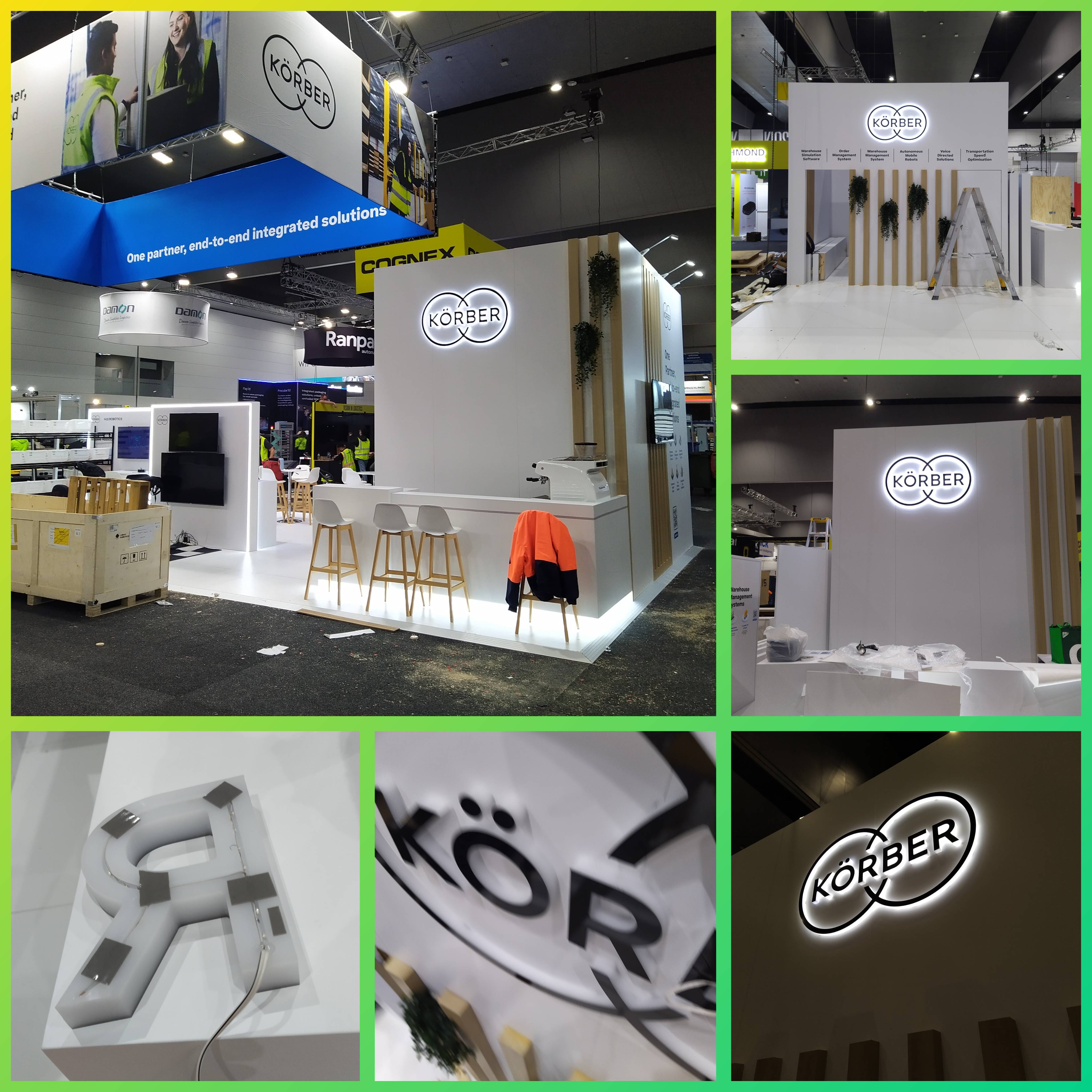 Custom booth design, woodworking, printing, lighting, AV setup, installation & dismantling.